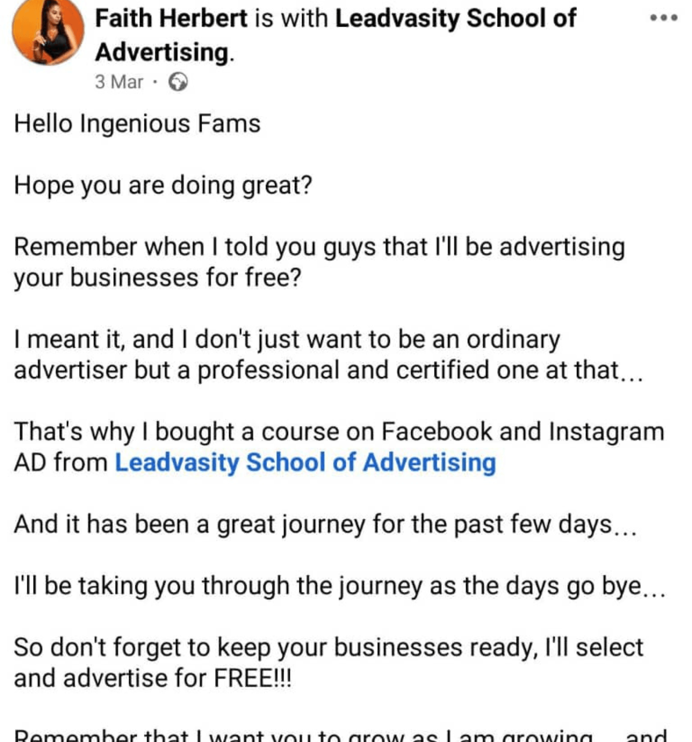 Leadvasity School of Advertising is not just another online school. Our mission is to provide world-class education in digital advertising for individuals, enabling them to scale their business and build sustainable wealth