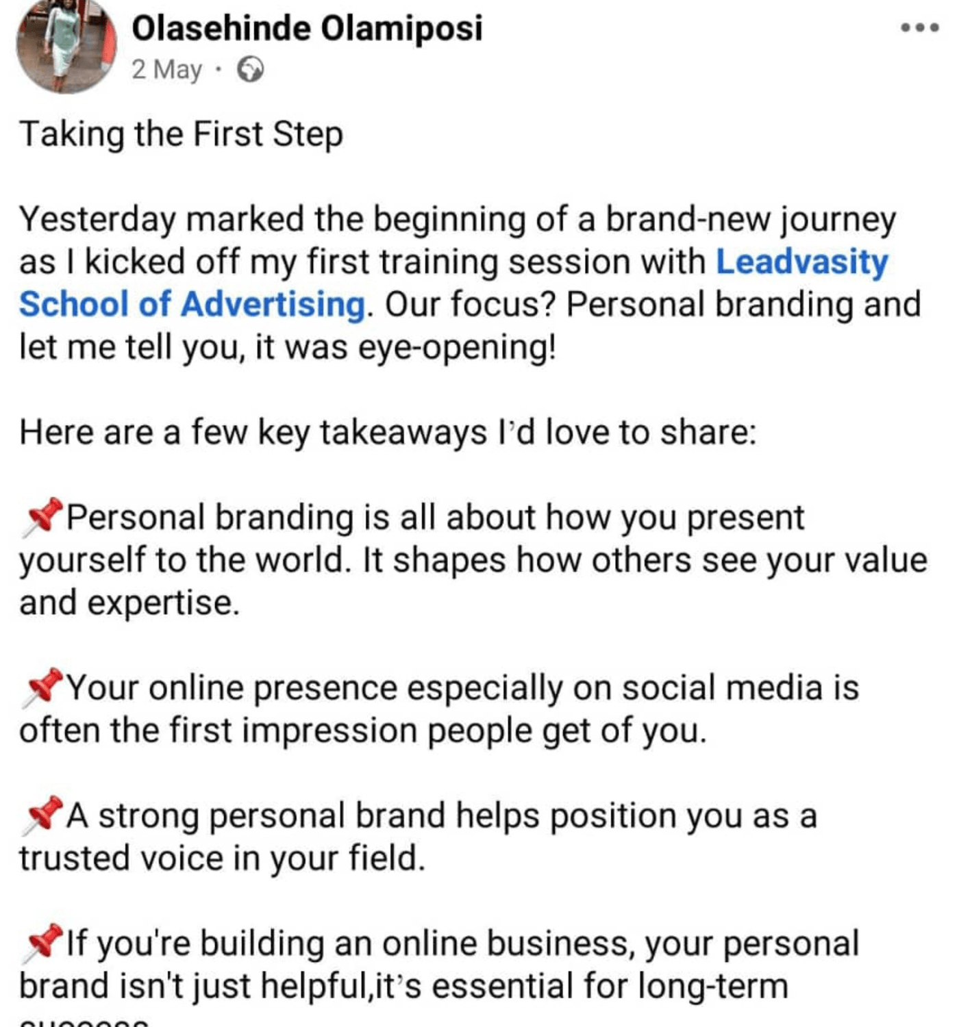 She is set to train 1 million individuals on digital advertising for their business and career life through Leadvasity School of Advertising.